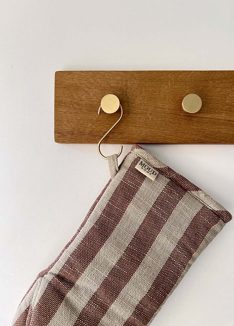 Messing s-krog, som kan bruges flere steder i hjemmet. S-krogen kan bruges på badeværelset til håndklæder, i køkkenet til viskestykker eller til overtøj i din gang.